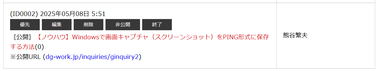熊谷繁夫 2025年05月10日 23:05 ①タイトルと投稿内容を入力します。 ※タイトルは【】を付けるとタグとして自動認識されます。 例:【ノウハウ】→「ノウハウ」として自動認識して分類します。 |